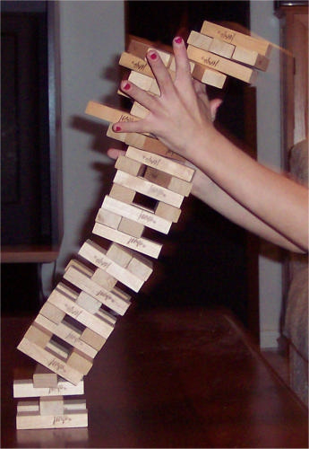 Answering the phone against better judgment at 4:00 am. “How about a game of Jenga?” a girl’s voice says. “Well, it is 4:00 and I’m not exactly—” I am cut off at this point and random points of derision are inserted about my dedication to the game of Jenga. I’ve heard a lot more crushing things, I have to admit. But I do not hang up without asserting that I am in fact the Jenga Champion, which may well be going on my resume.